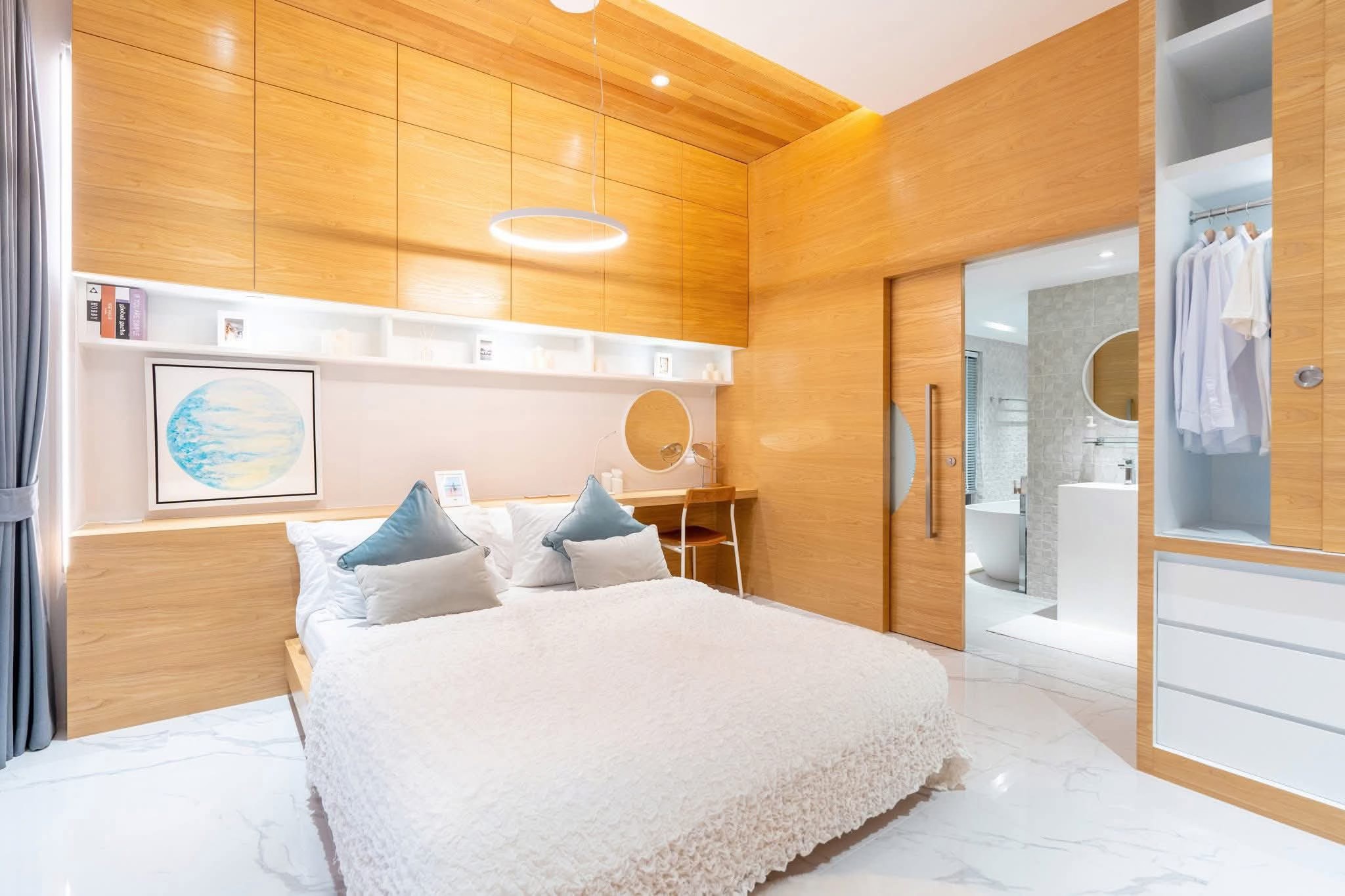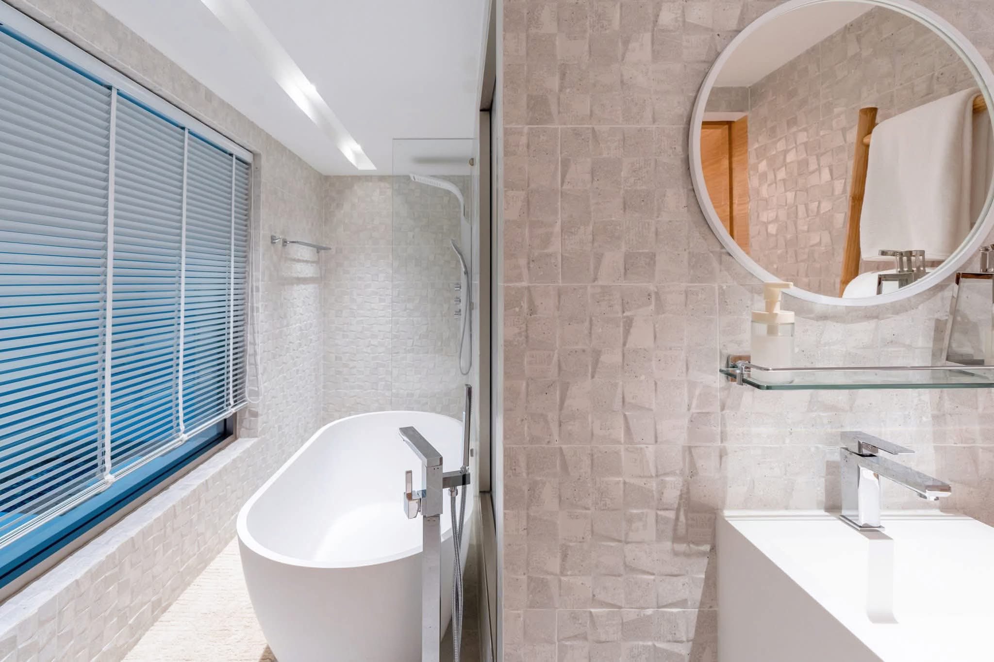 Büyük pencereli, bol doğal ışıklı ve zarif iç mekanlara sahip iki ebeveyn banyolu yatak odası. Banyolar, spa benzeri bir his veren birinci sınıf armatürlere sahiptir.